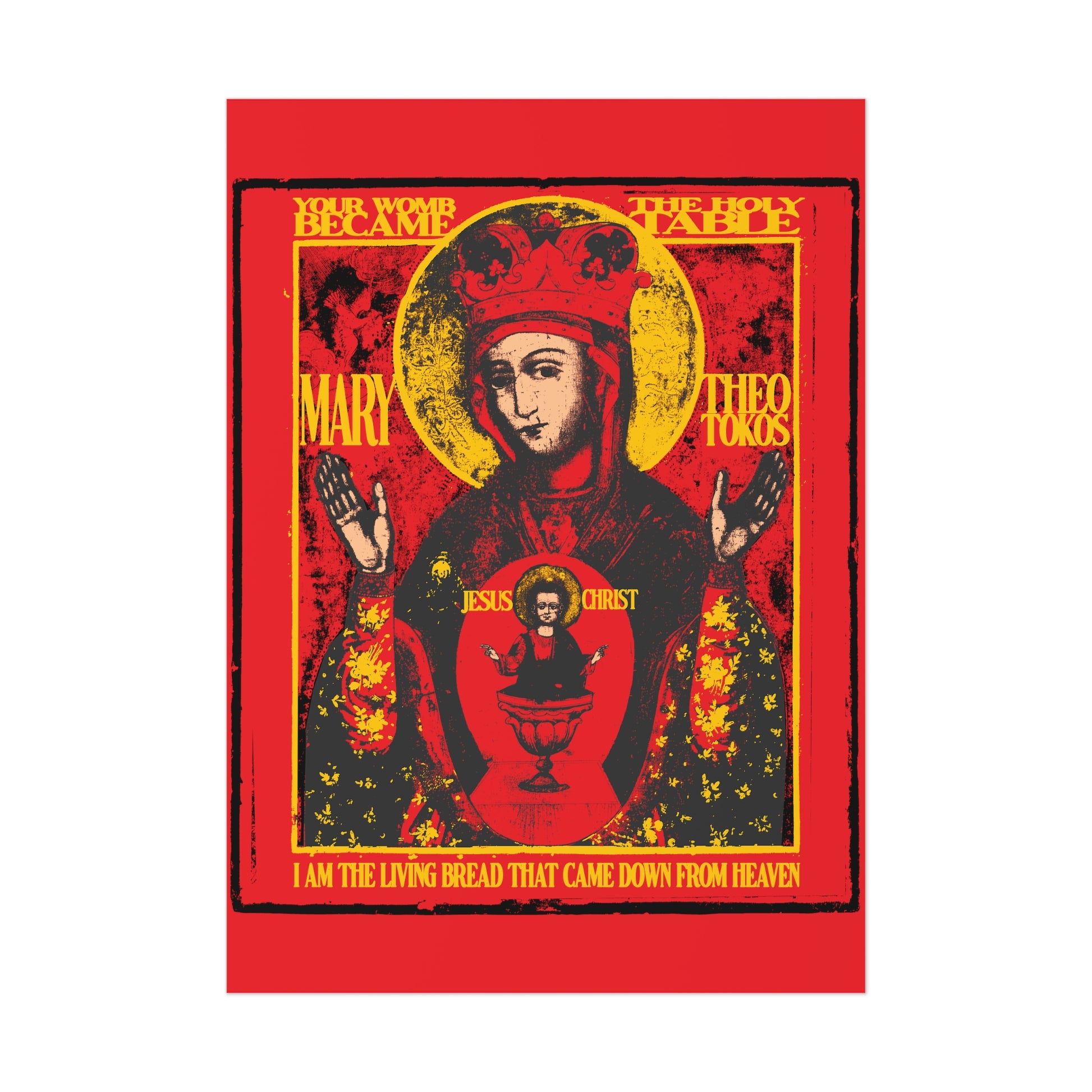 "Your womb has become a Holy Table, which held the Heavenly Bread. Those who partake of it shall not die, as the Nourisher of all has said, O Theotokos."