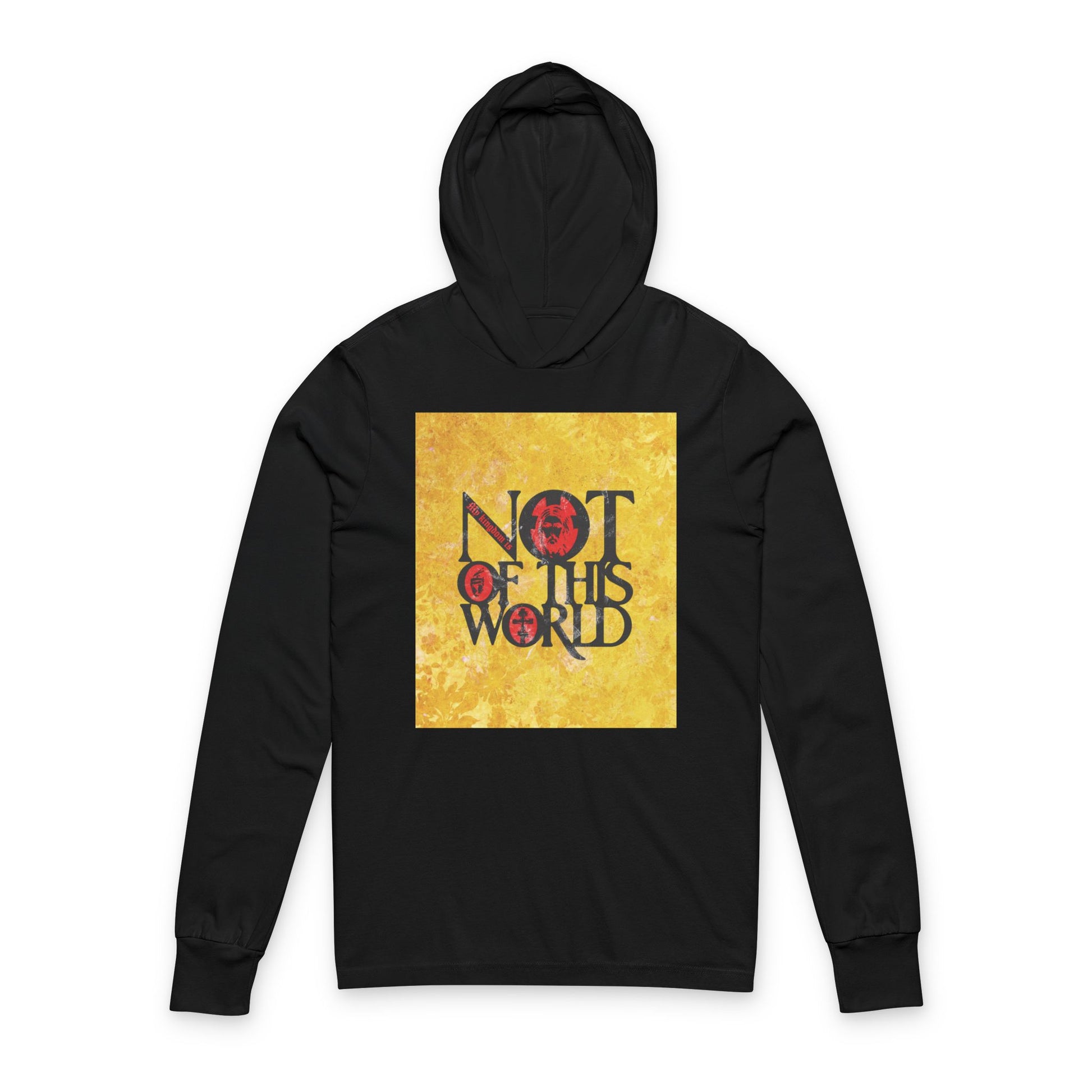 My Kingdom is Not of This World (John 18:36) | Bold Red, Yellow & Black Textured Design with Icon Motifs | Orthodox Long Sleeve Hooded Shirt