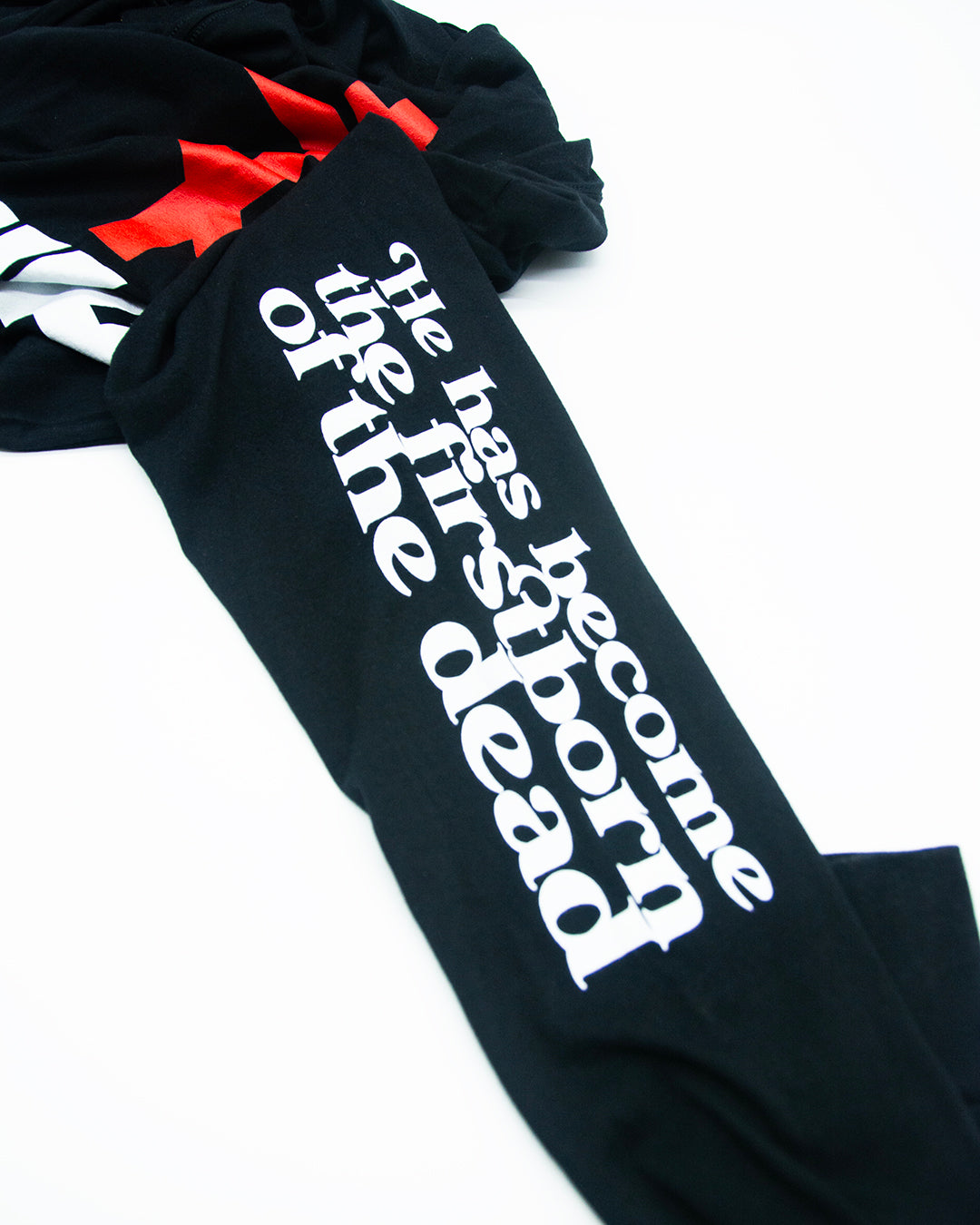 The Remembrance of Death Orthodox Christian Hooded Long Sleeve Shirt defines streetwear for unseen warfare. With the option to proclaim your allegiance to the Lord front, back, and on both sleeves, very little real estate stands to be wasted to spark a potentially conversion conversation.