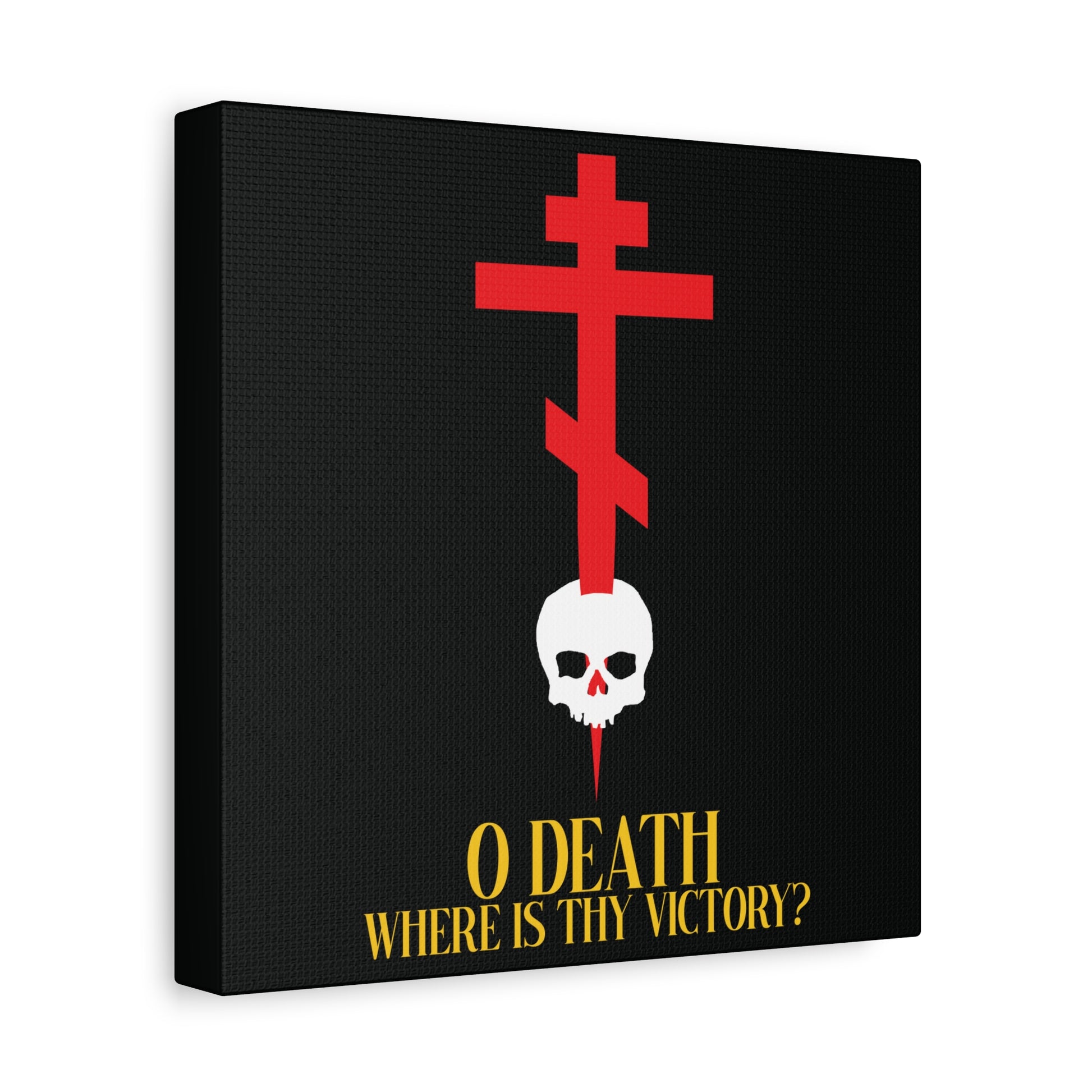 O Death Where is Thy Victory? (1 Corinthians 15:55) | Cross Stabbing Skull | Yellow Text | Orthodox Christian Canvas Art