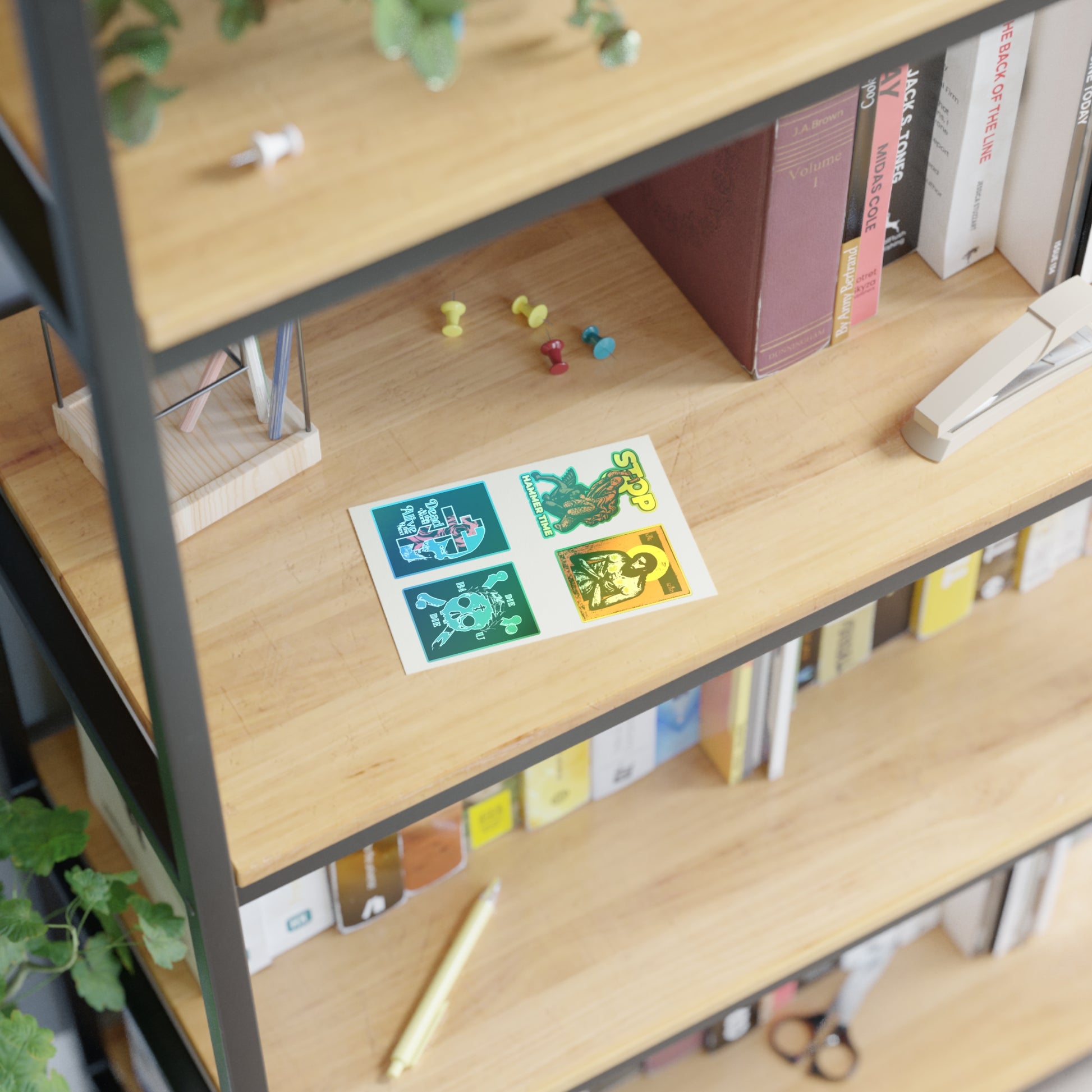 Sheet of stickers with four Remembrance of Death designs: