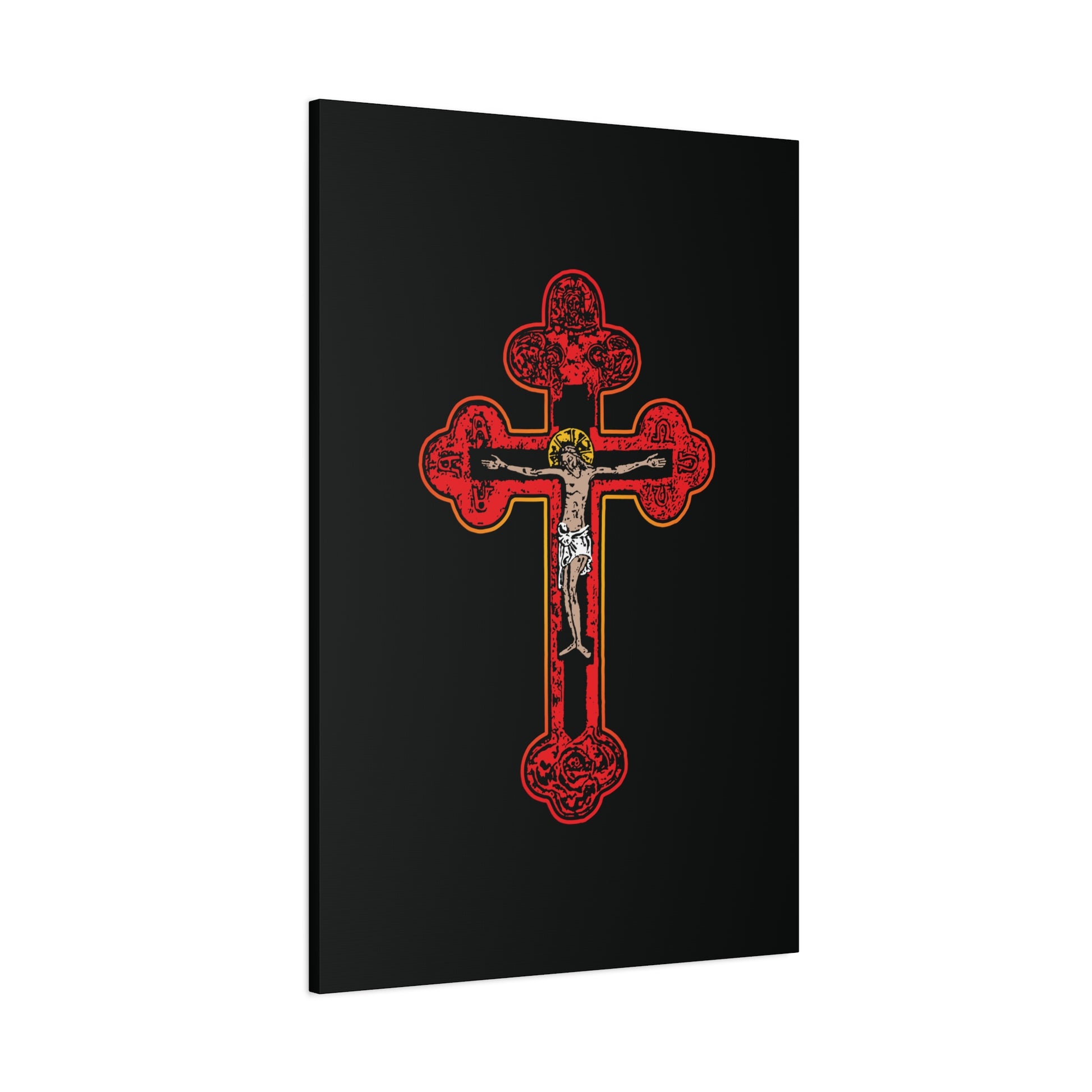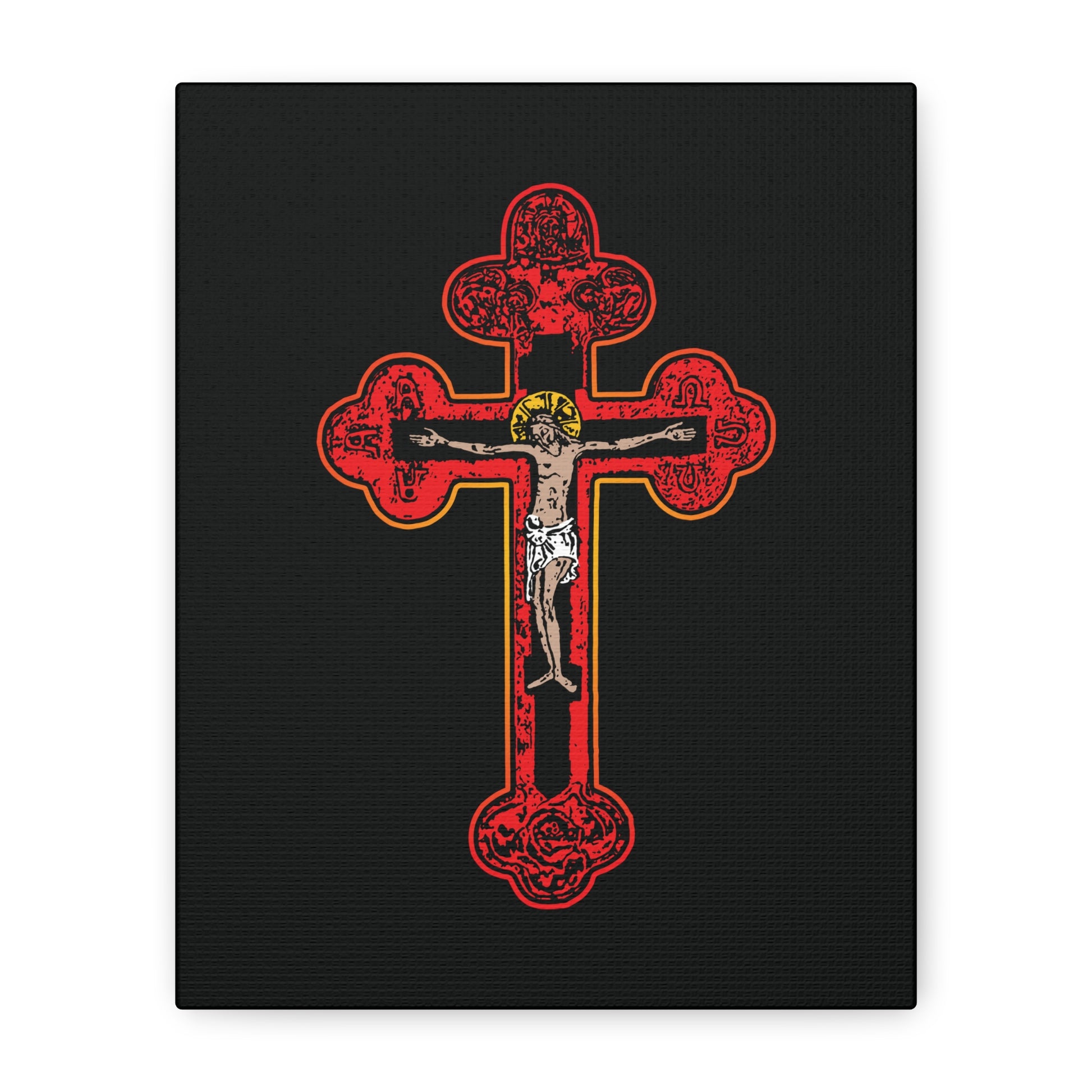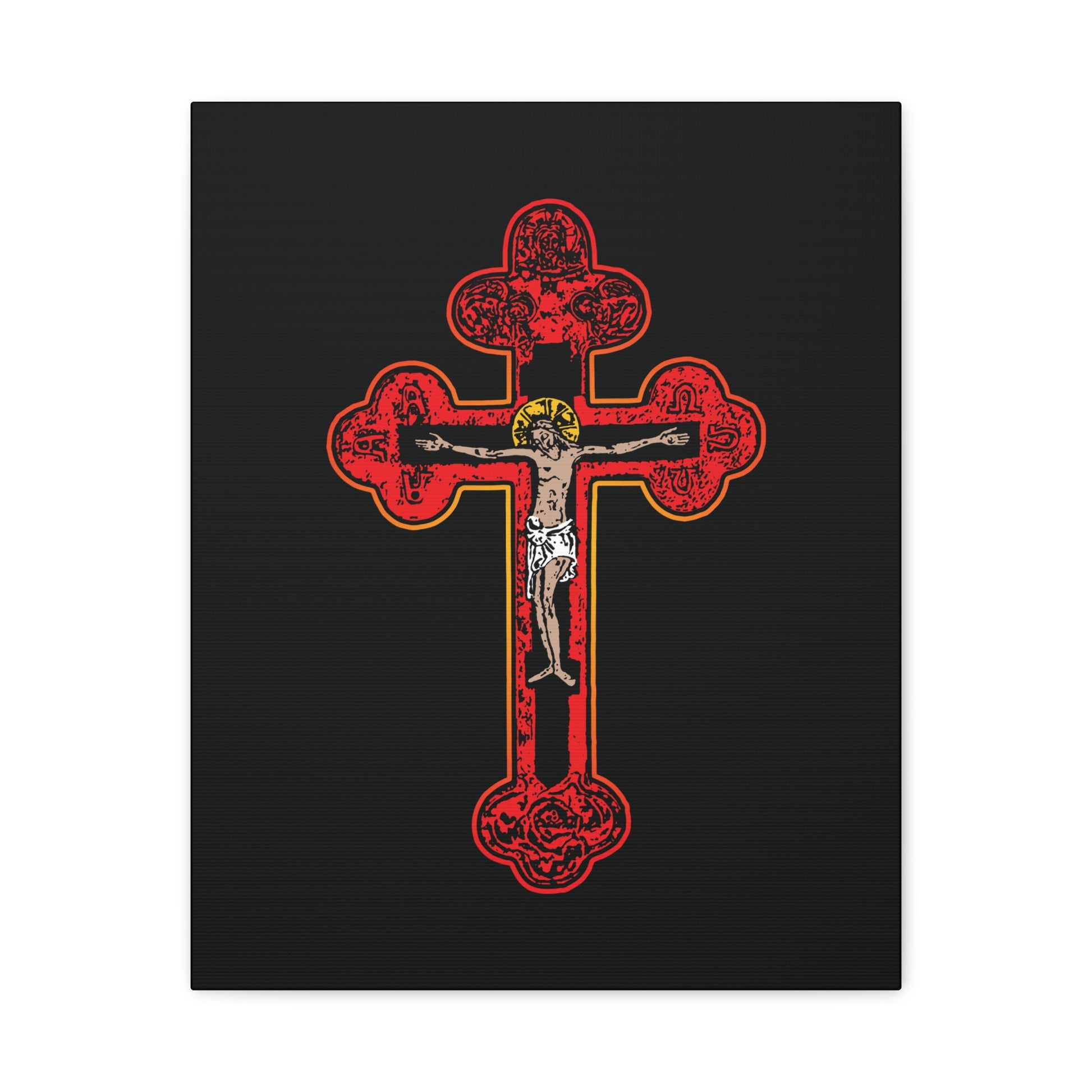 Red Orthodox Christian Crucifix | Byzantine Golgotha Cross | Alpha & Omega | I Am Crucified With Christ | Orthodox Christian Canvas Wall Art