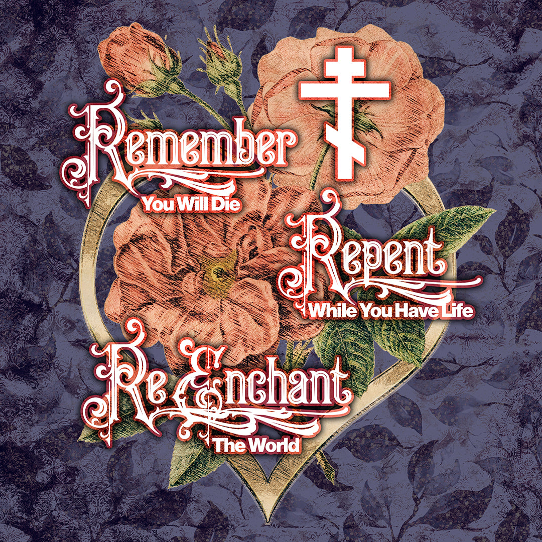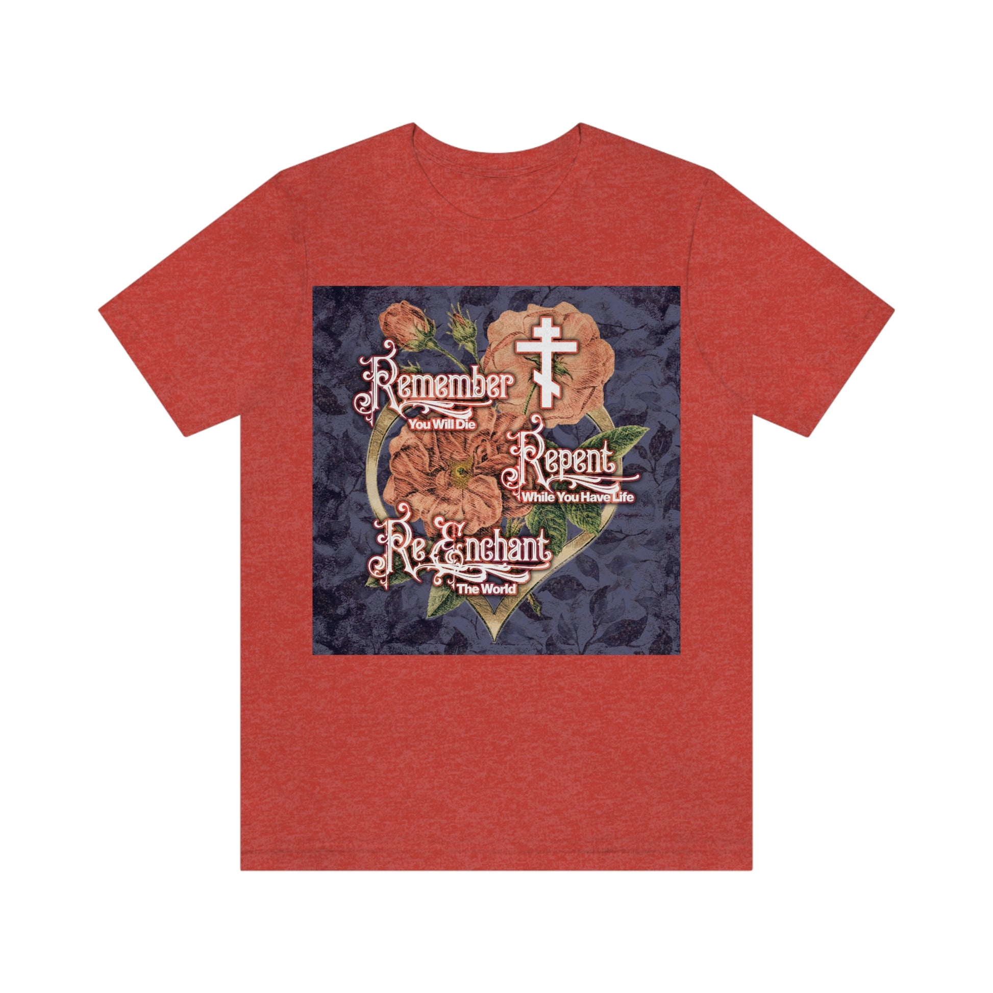 Remember Repent Re-Enchant | Victorian Floral Heart Design Texture | Orthodox Christian T-Shirt
