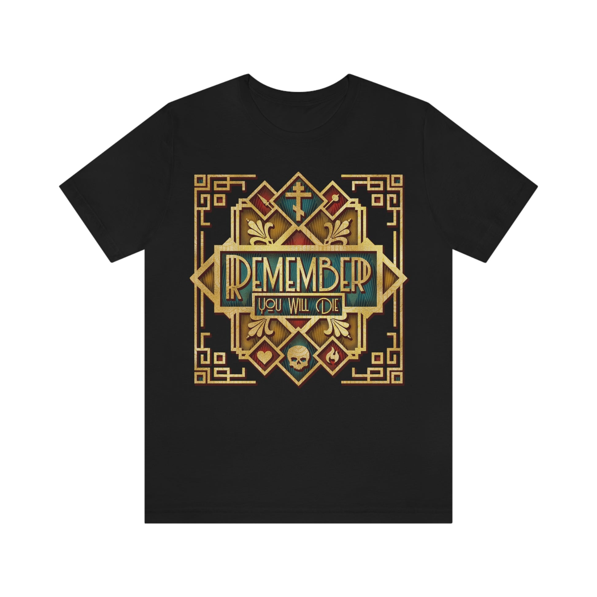 Remember You Will Die | Photorealistic Green & Gold American Art Deco Aesthetic | Orthodox Christian T-Shirt