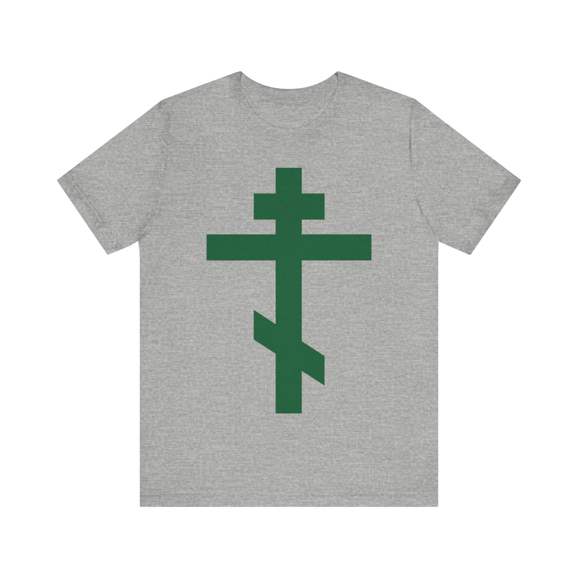 Forest Green Orthodox Tribar Cross | Preserve Thy People By Thy Cross, O Lord | Christ is King | Christian Unisex Cotton Tee