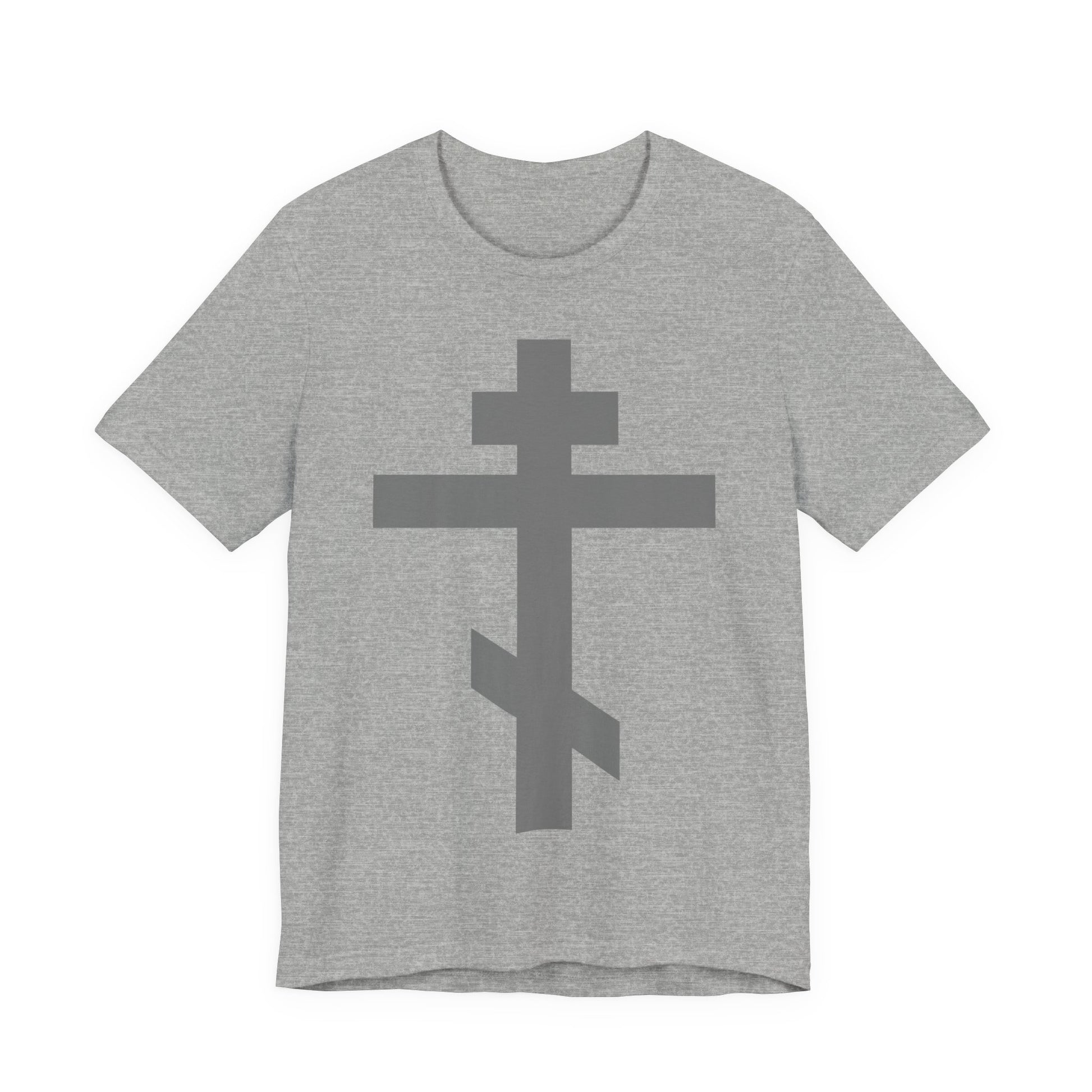 Light Gray Orthodox Tribar Cross | Preserve Thy People By Thy Cross, O Lord | Christ is King | Christian Unisex Cotton Tee