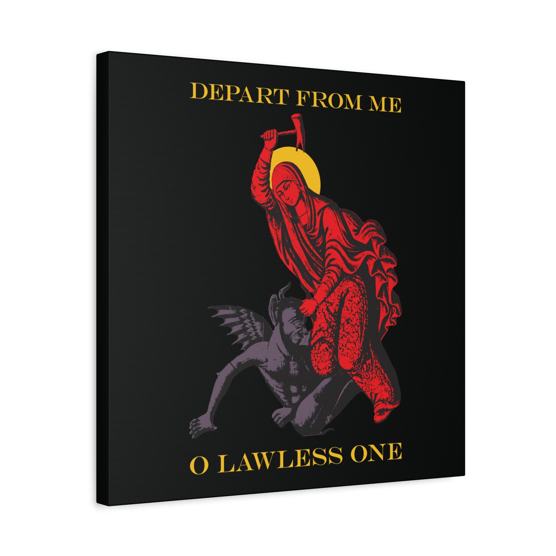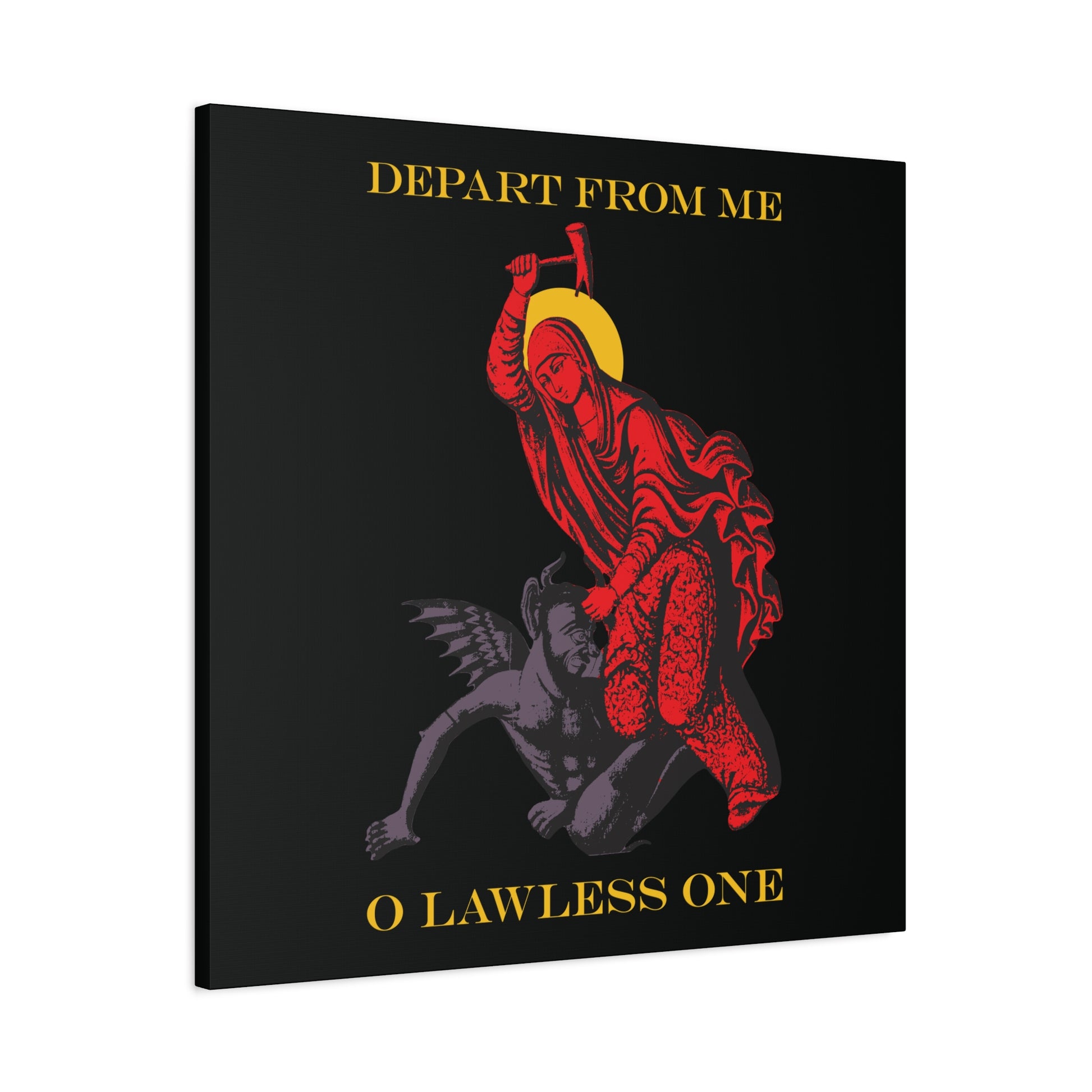 St Marina IconoGraphic (Depart from Me O Lawless One) | Saint Beating the Devil with a Hammer | Orthodox Christian Canvas Art