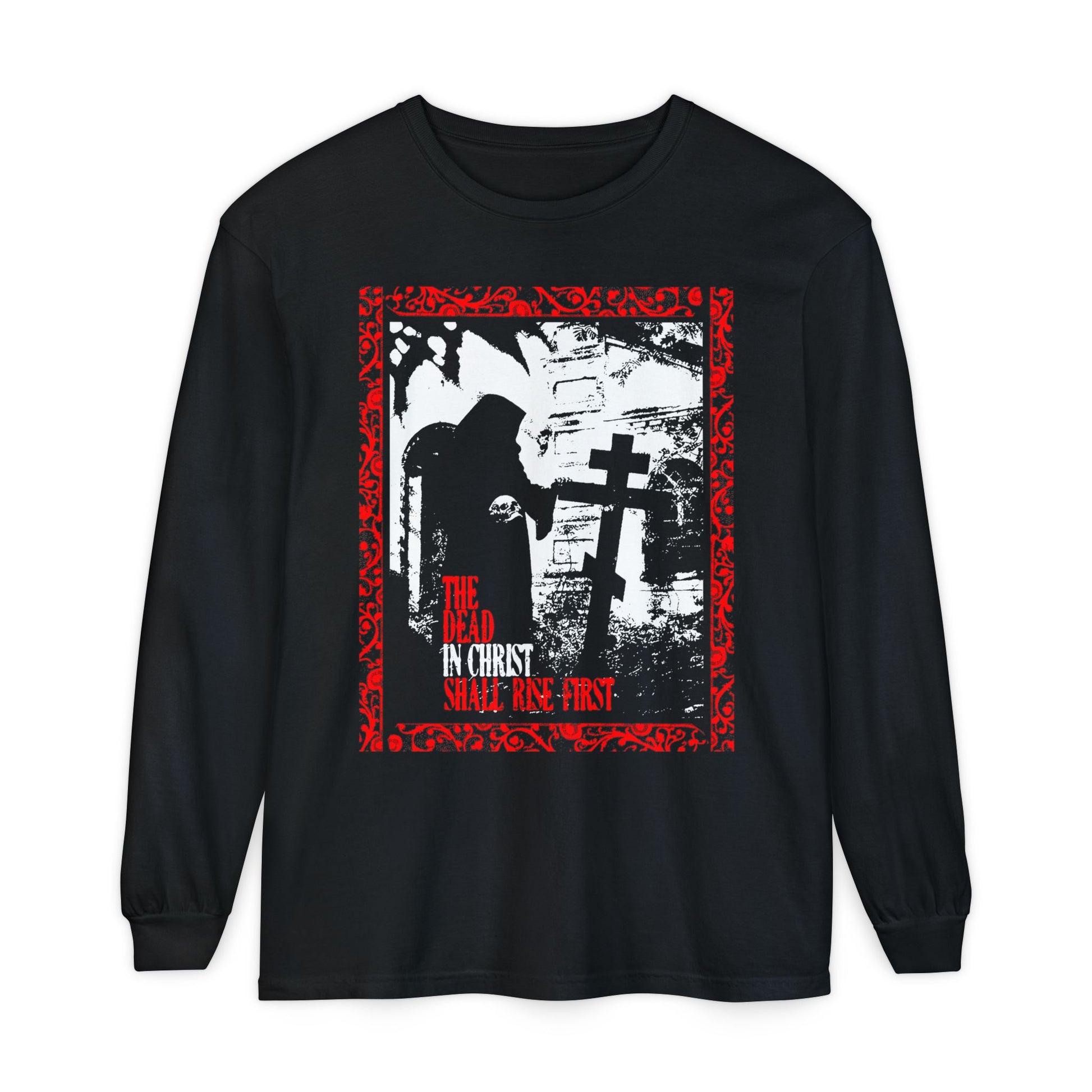 The Dead in Christ Shall Rise First | Gothic Graveyard Design | 1 Thessalonians 4:16 | Orthodox Christian Long Sleeve Shirt