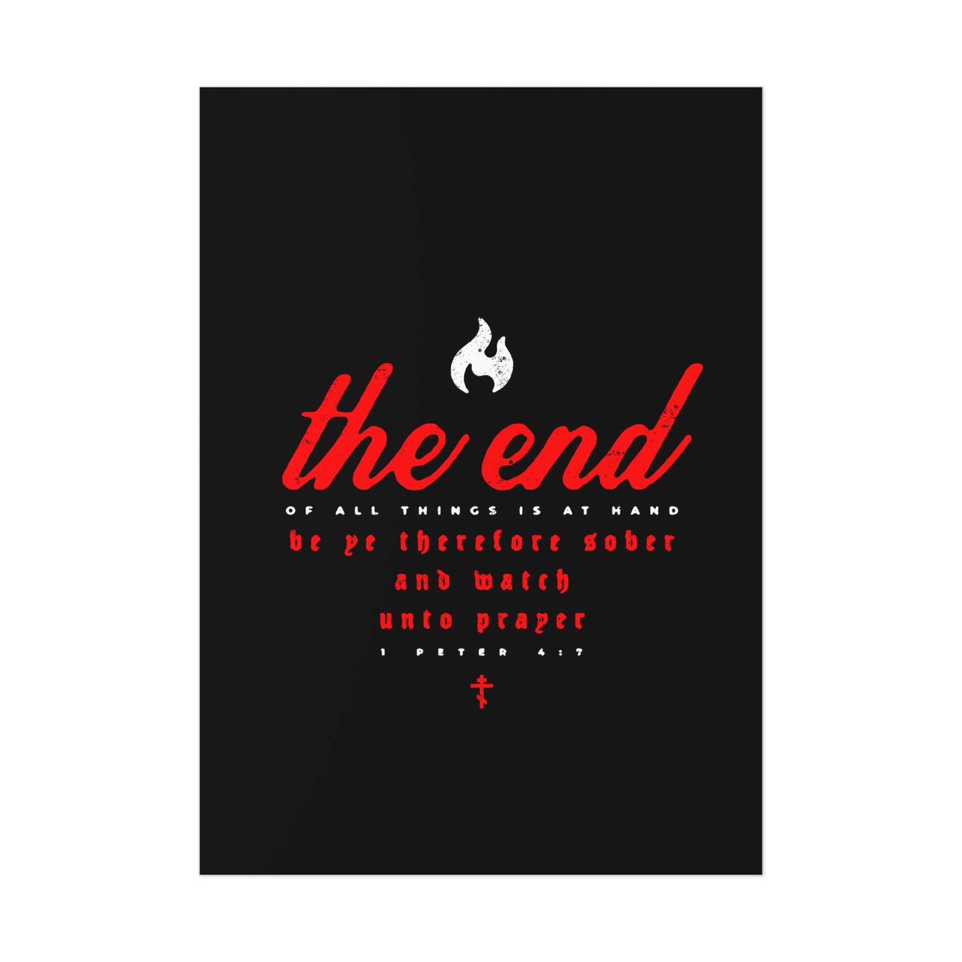 The End of All Things is At Hand (1 Peter 4:7) | Minimalist Typography | Red White and Black | Orthodox Christian Art Poster