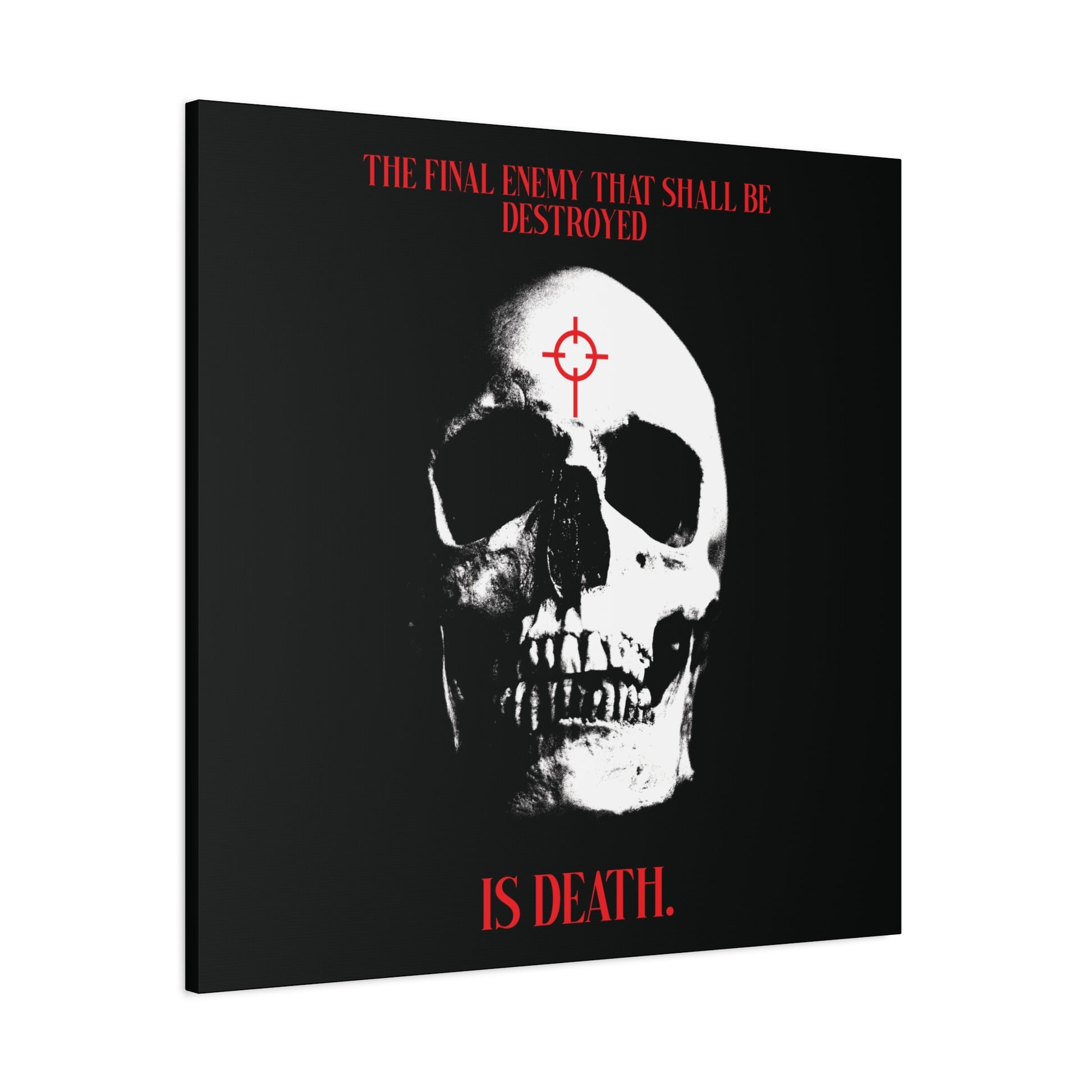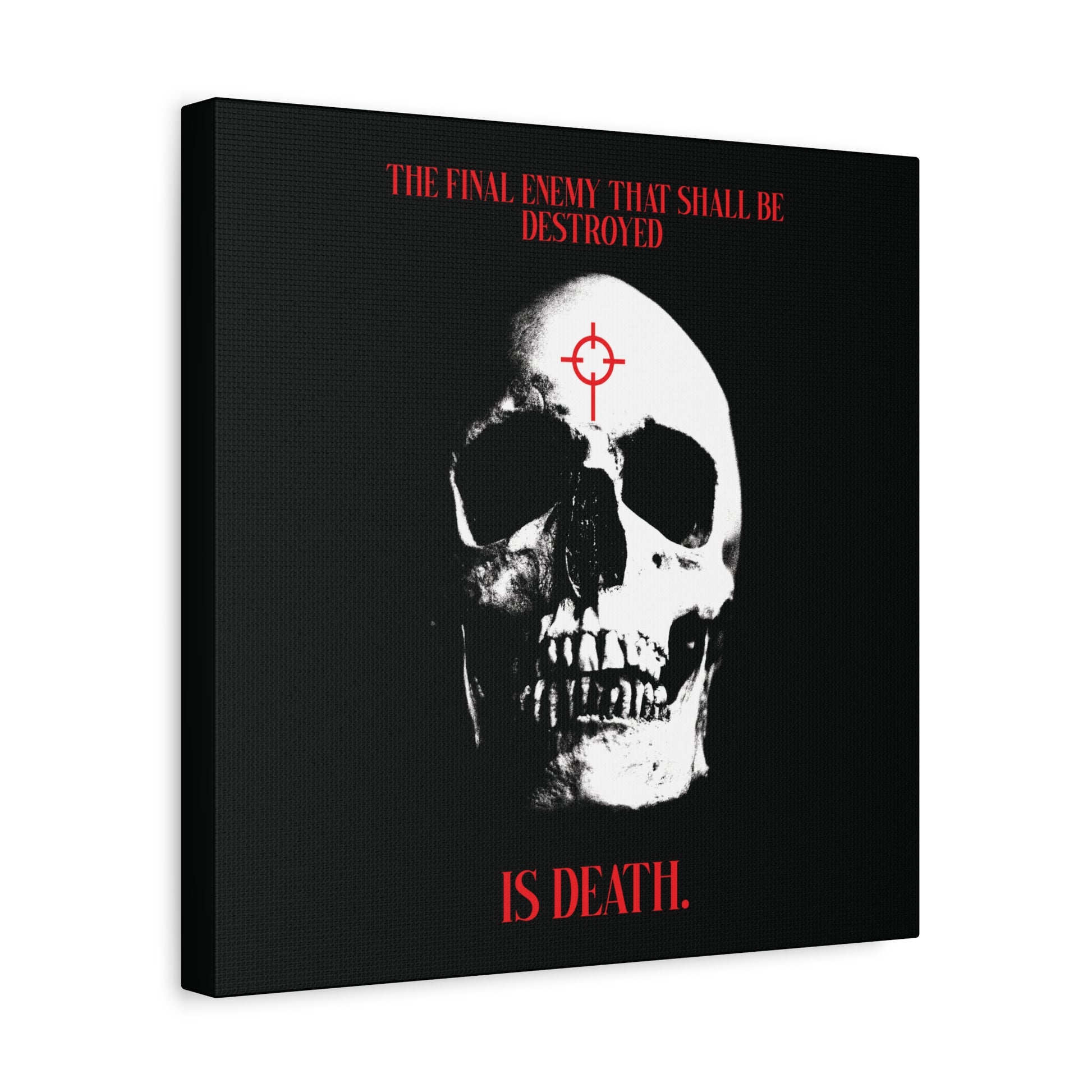 The Final Enemy That Shall Be Destroyed (1 Cor 15:26) | Skull in Crosshairs | Gothic Style Orthodox Christian Canvas Art