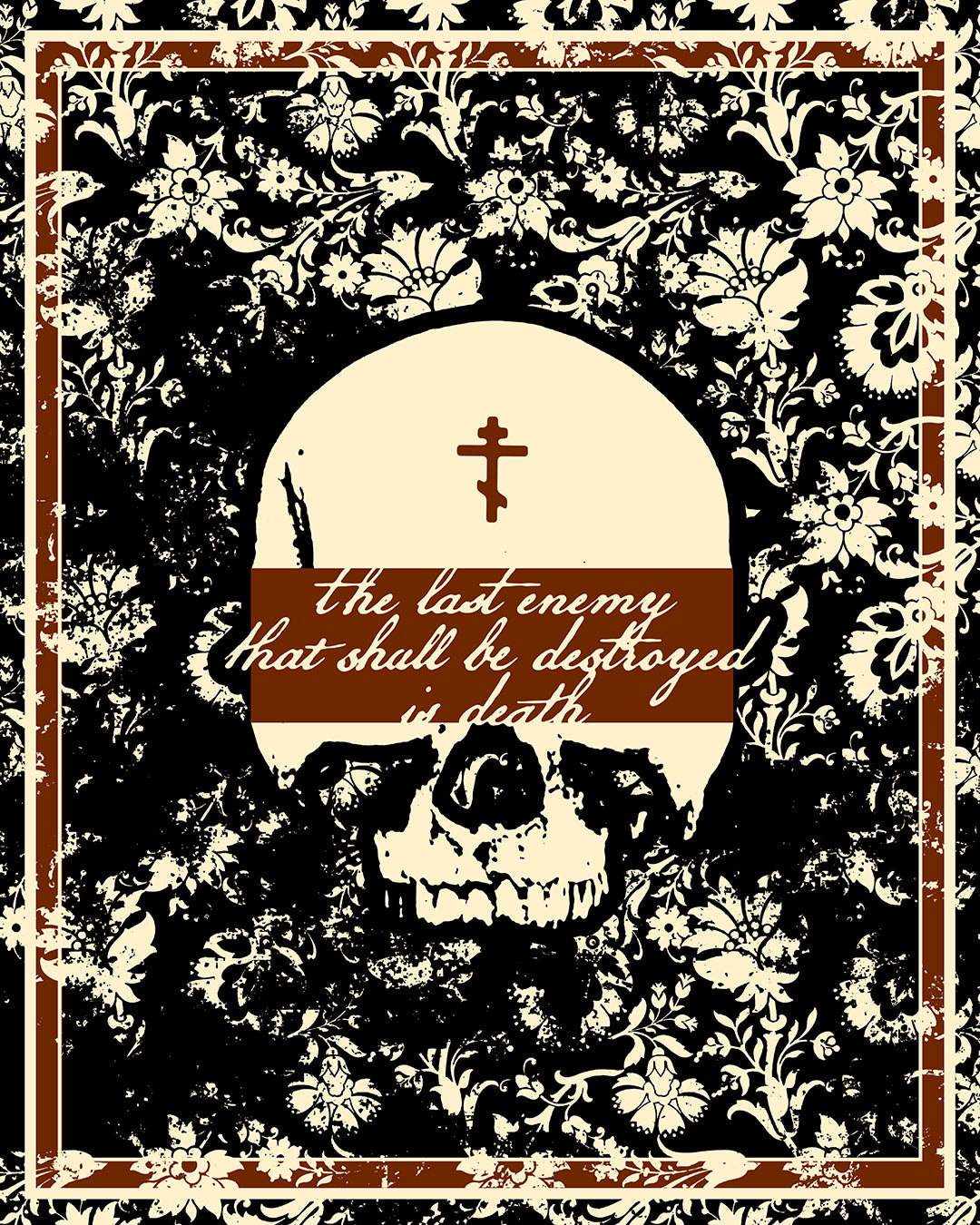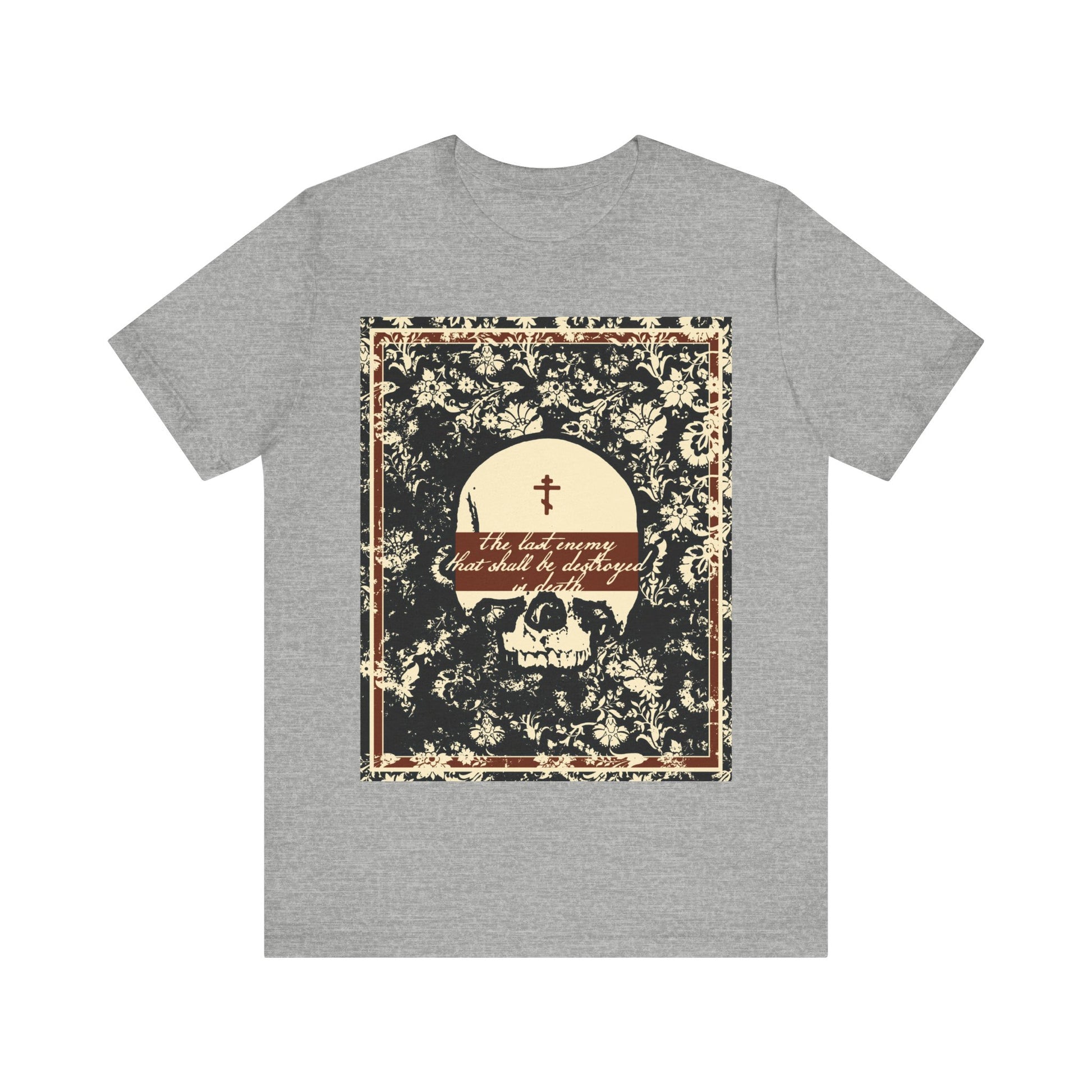 The Last Enemy That Shall Be Destroyed is Death (1 Cor 15:26) | Earthtone Skull and Floral Design | Resurrection | Orthodox Christian T-Shirt