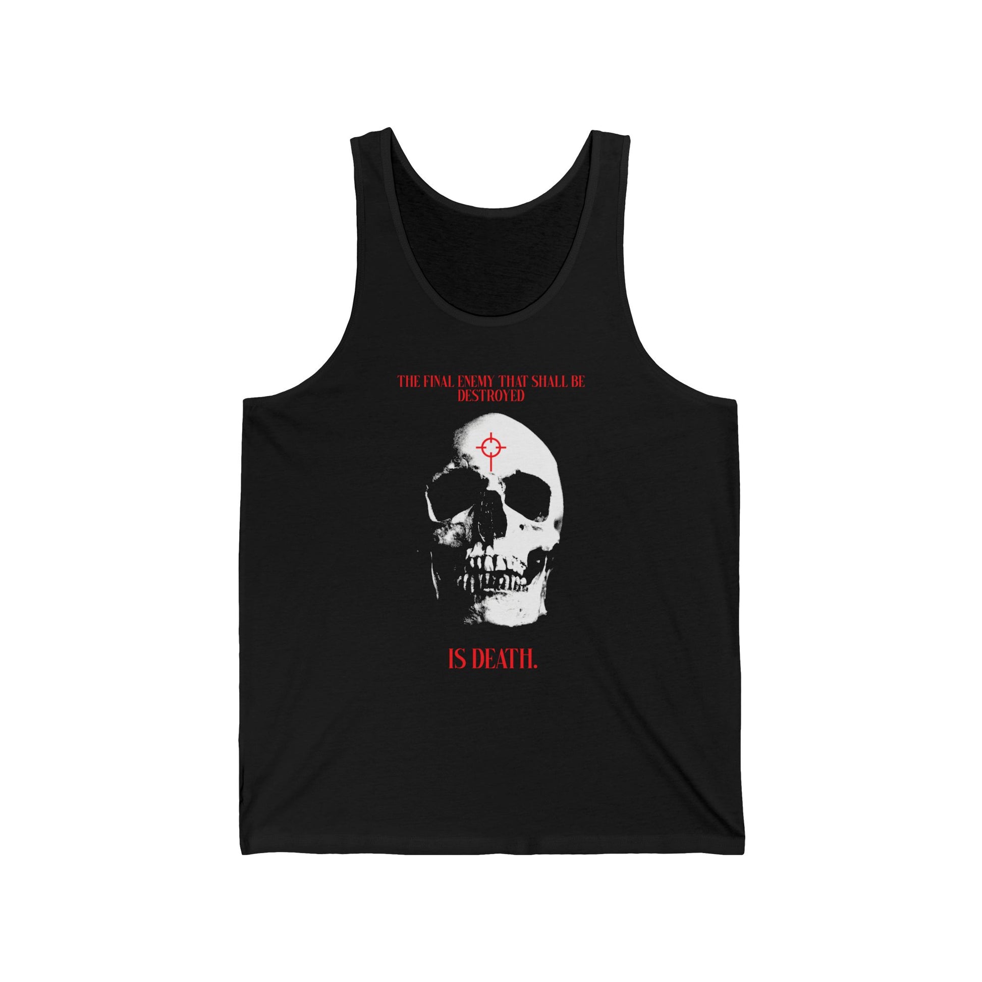 The Final Enemy That Shall Be Destroyed (1 Cor 15:26) | Skull in Crosshairs | Gothic Style Orthodox Christian Jersey Tank Top