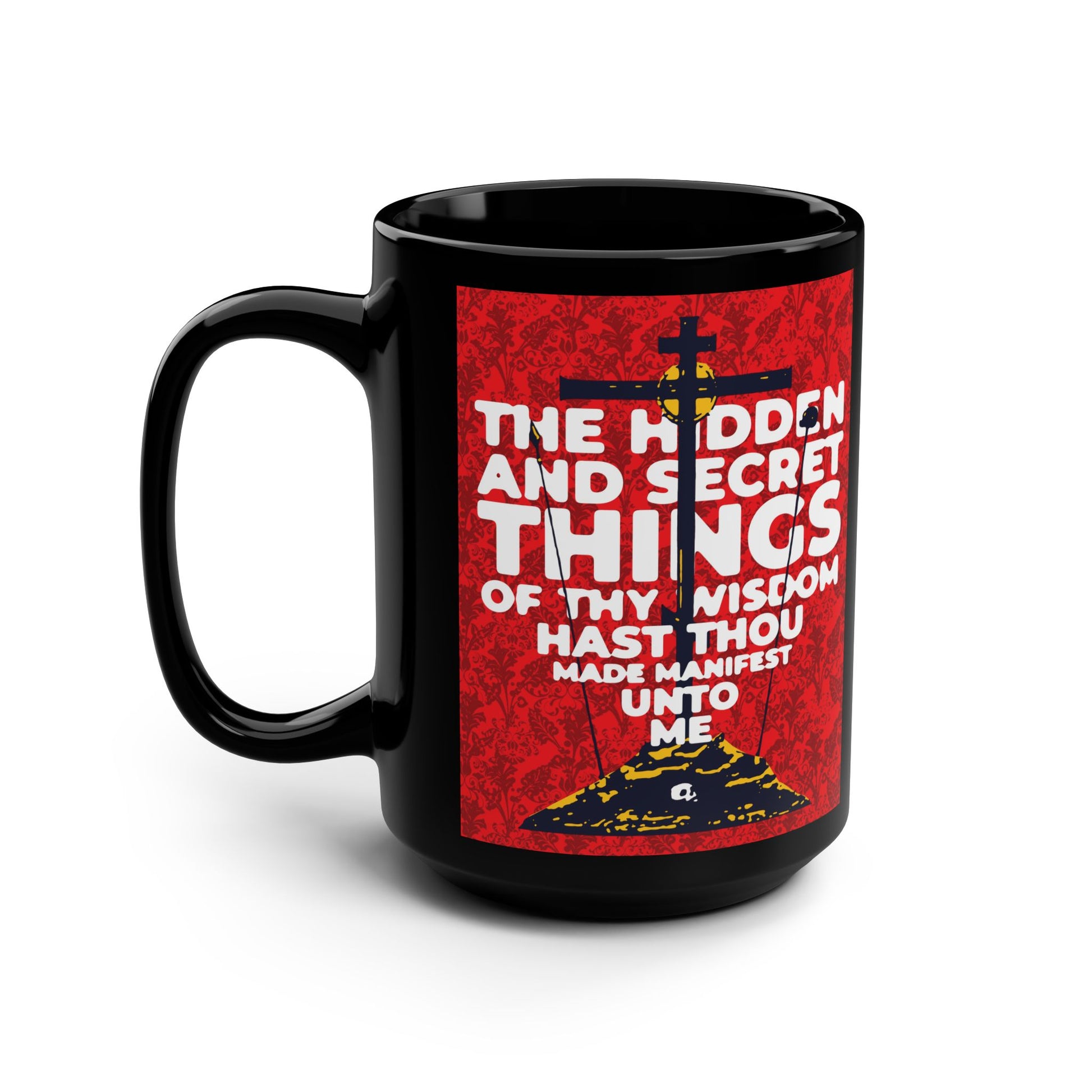 The Hidden and Secret Things of Thy Wisdom (Psalm 50/51) | Golgotha Cross | Skull of Adam | Orthodox Christian 15oz Black Mug