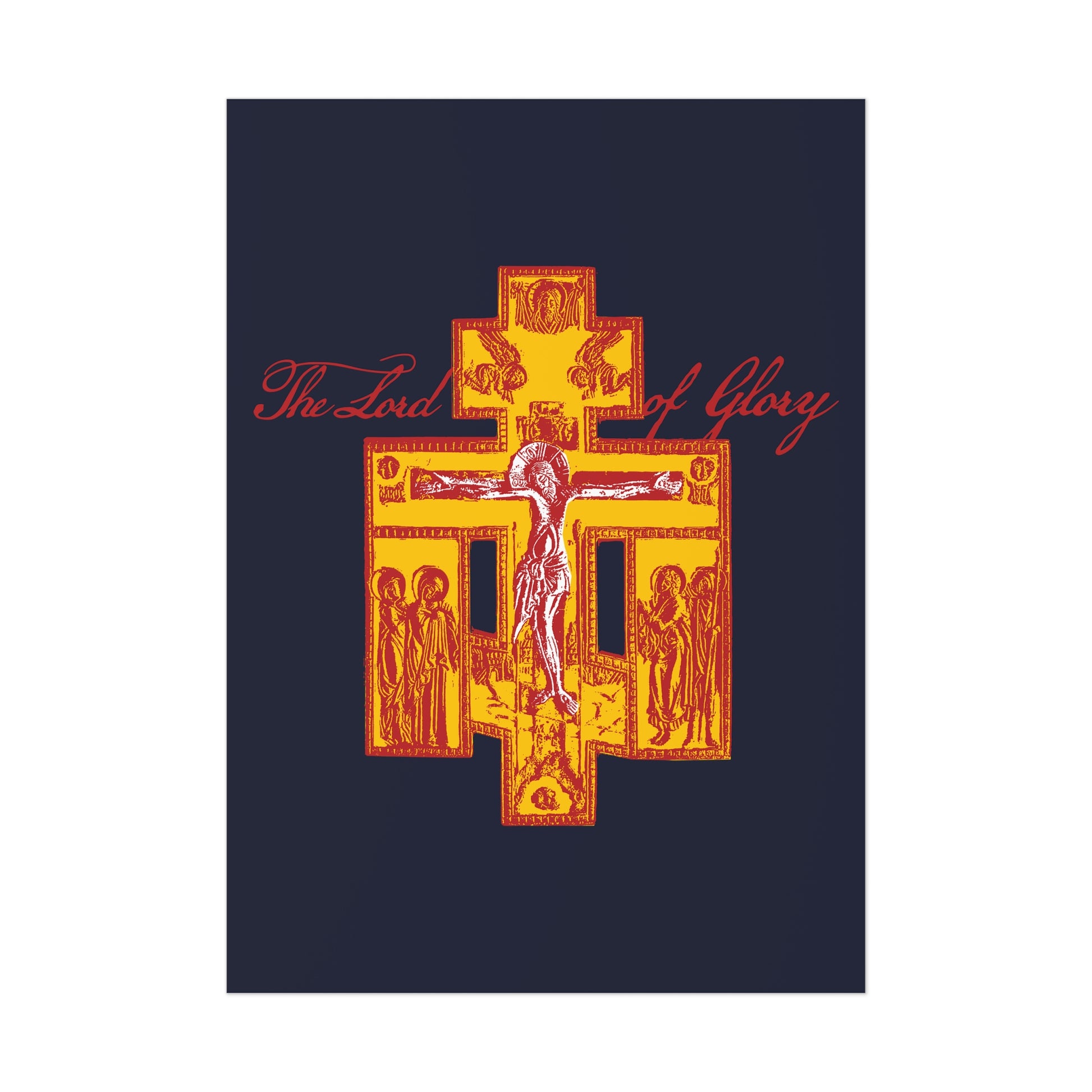 The Lord of Glory | Russian Golgotha Crucifix IconoGraphic (Blue BG) | 1 Corinthians 2:8 | Orthodox Christian Art Poster