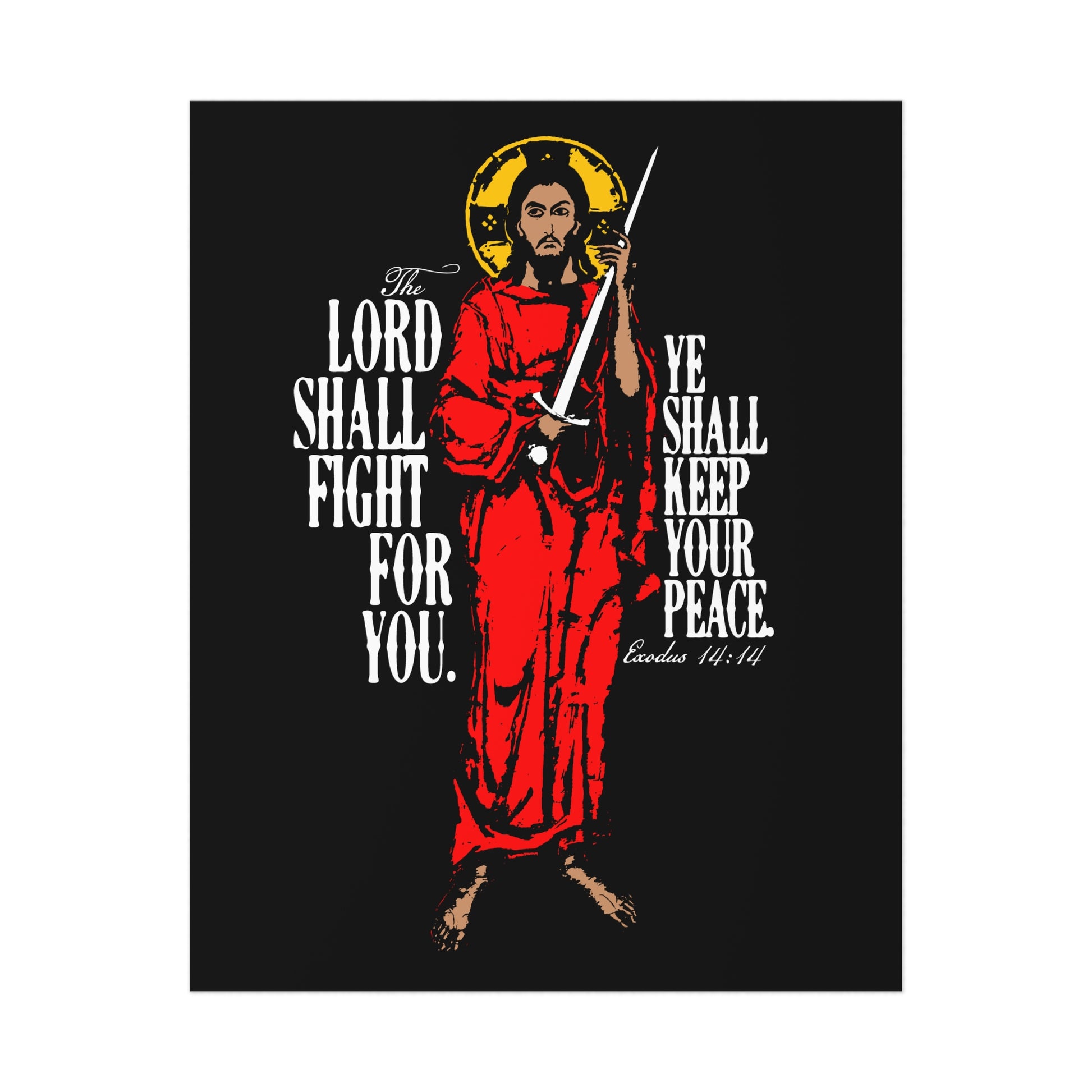The Lord Shall Fight For You (Exodus 14:14) | Jesus Christ with Sword IconoGraphic | Orthodox Christian Art Poster