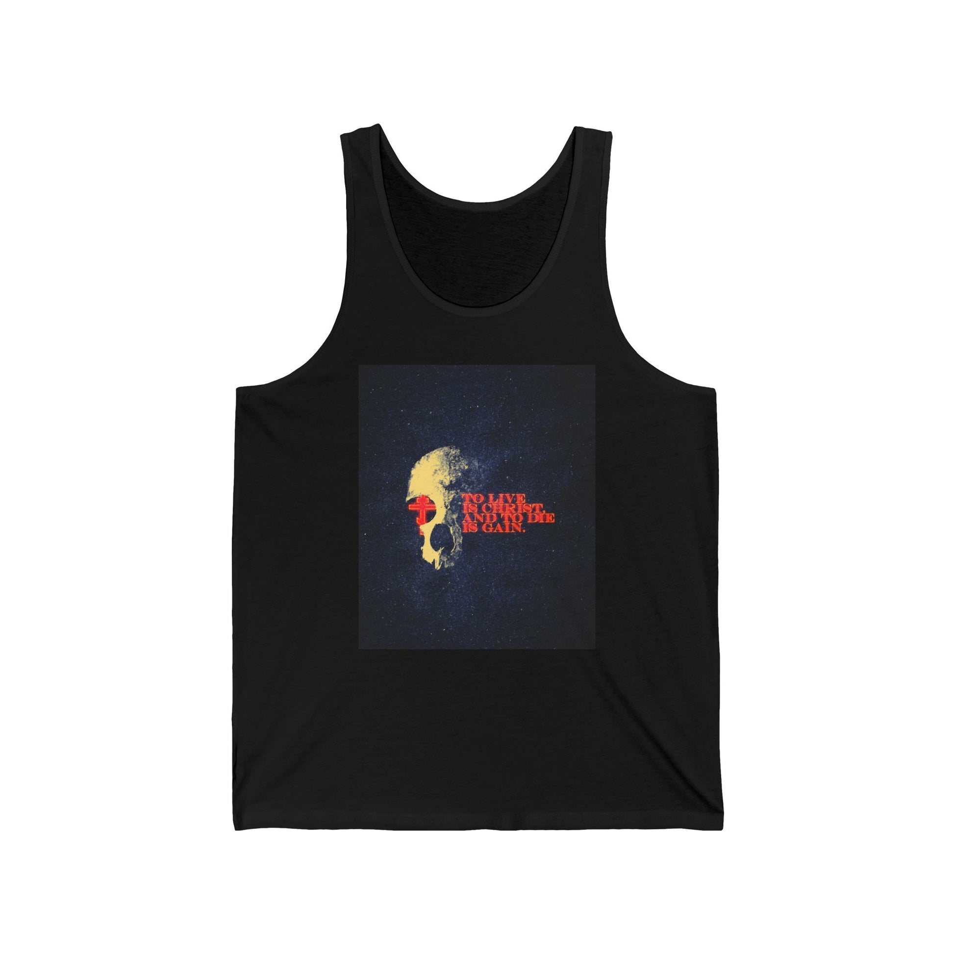 To Live is Christ and to Die is Gain | Phil 1:21 | Retro Texture | Glowing Letters and Cross with Skull | Orthodox Christian Jersey Tank Top