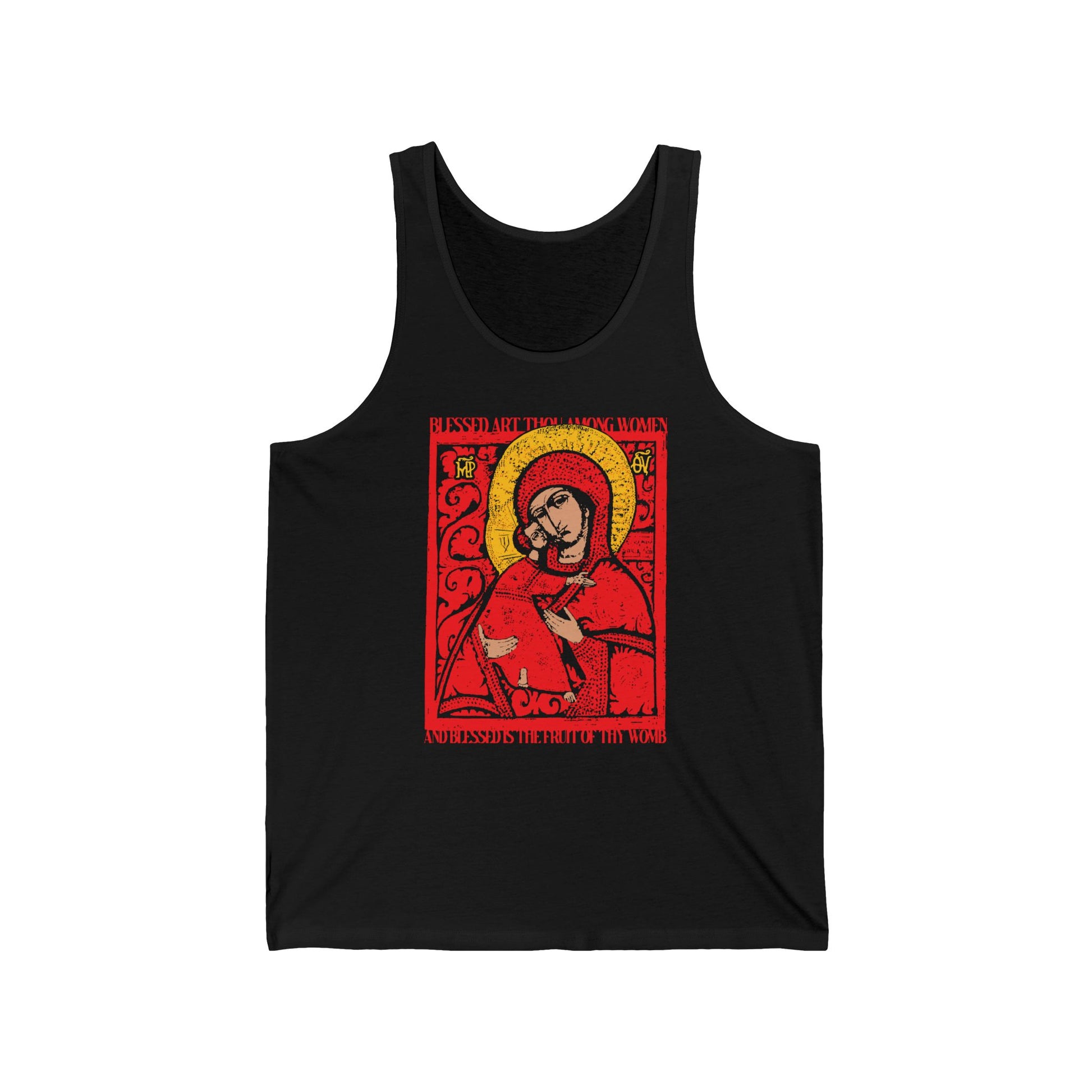 Vladimir Theotokos Icon (Blessed Art Thou Among Women) No. 1 | Orthodox Christian Jersey Tank Top / Sleeveless Shirt