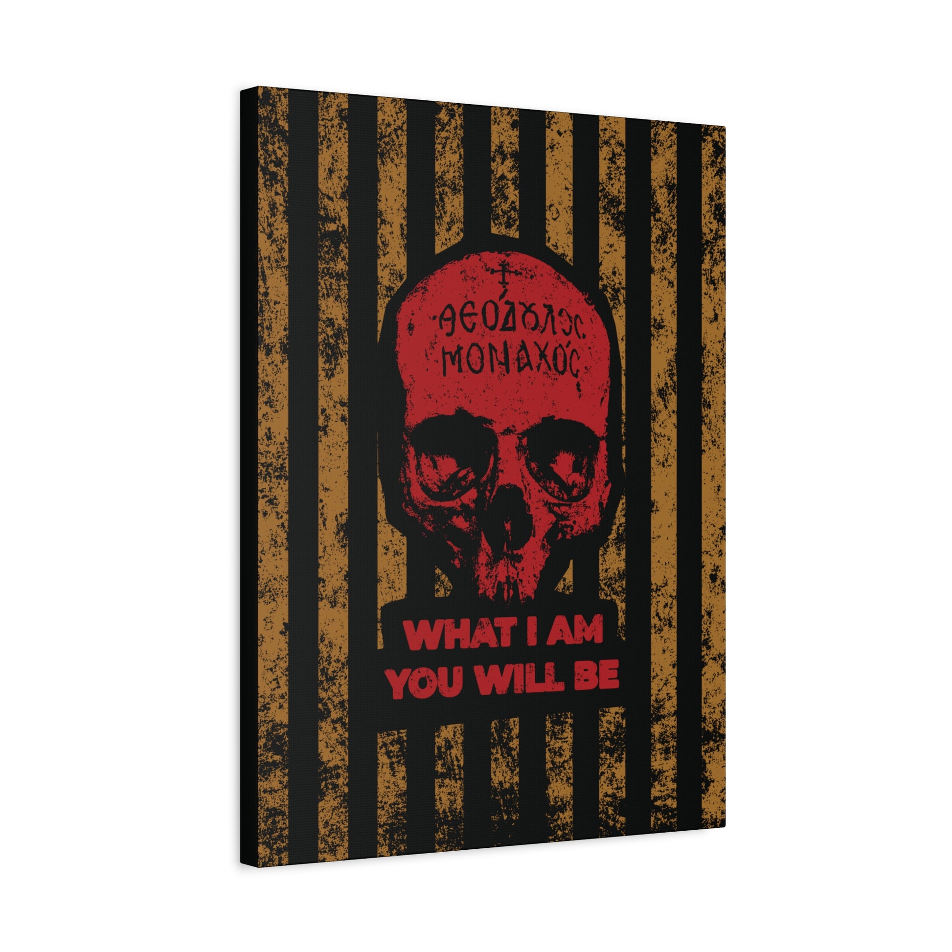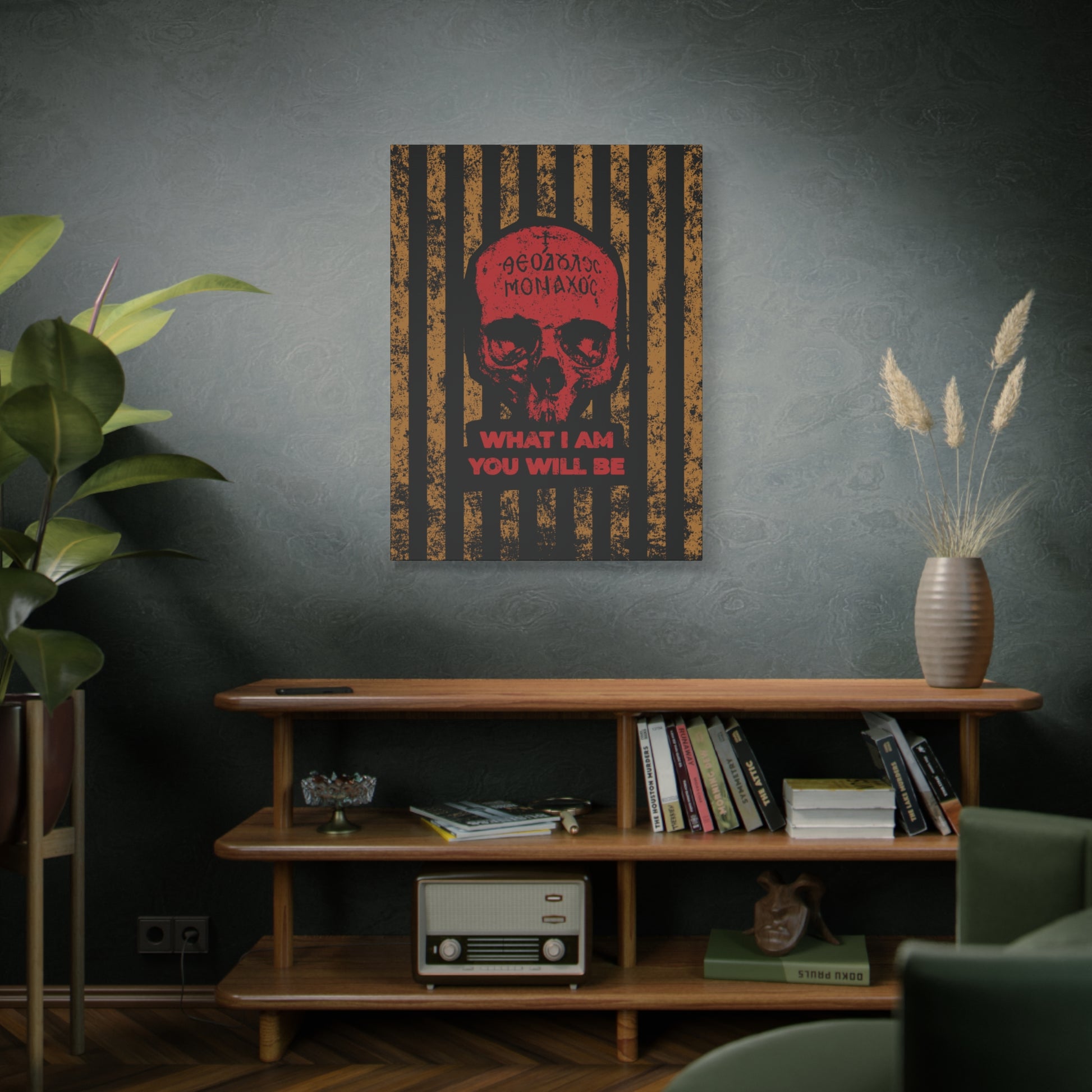 What I Am You Will Be | Memento Mori | Remembrance of Death | Mt Athos Monk Skull | Ascetic Ethos | Christian Canvas Art