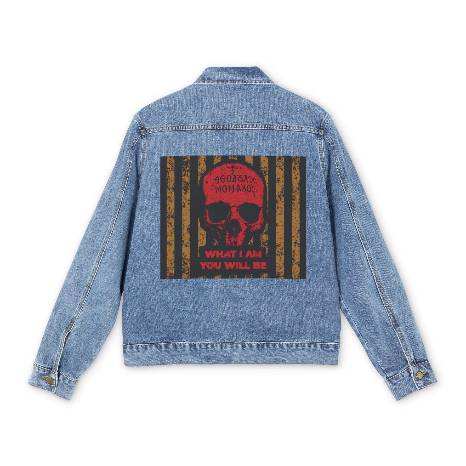 What I Am You Will Be | Memento Mori | Remembrance of Death | Mt Athos Monk Skull | Ascetic Ethos | Christian Jean Jacket
