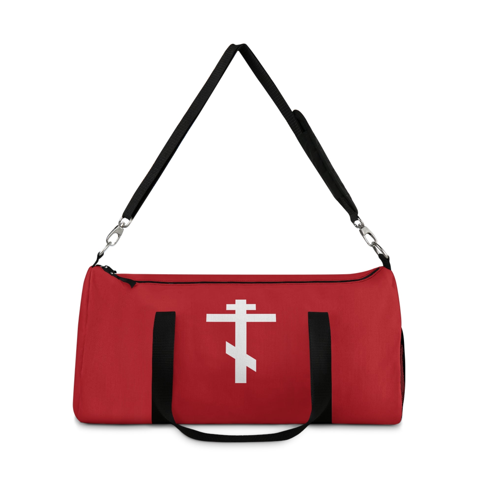 White Orthodox Cross Red Background | Today the Cross of the Lord cometh forth | Orthodox Christian Gym Duffel Bag