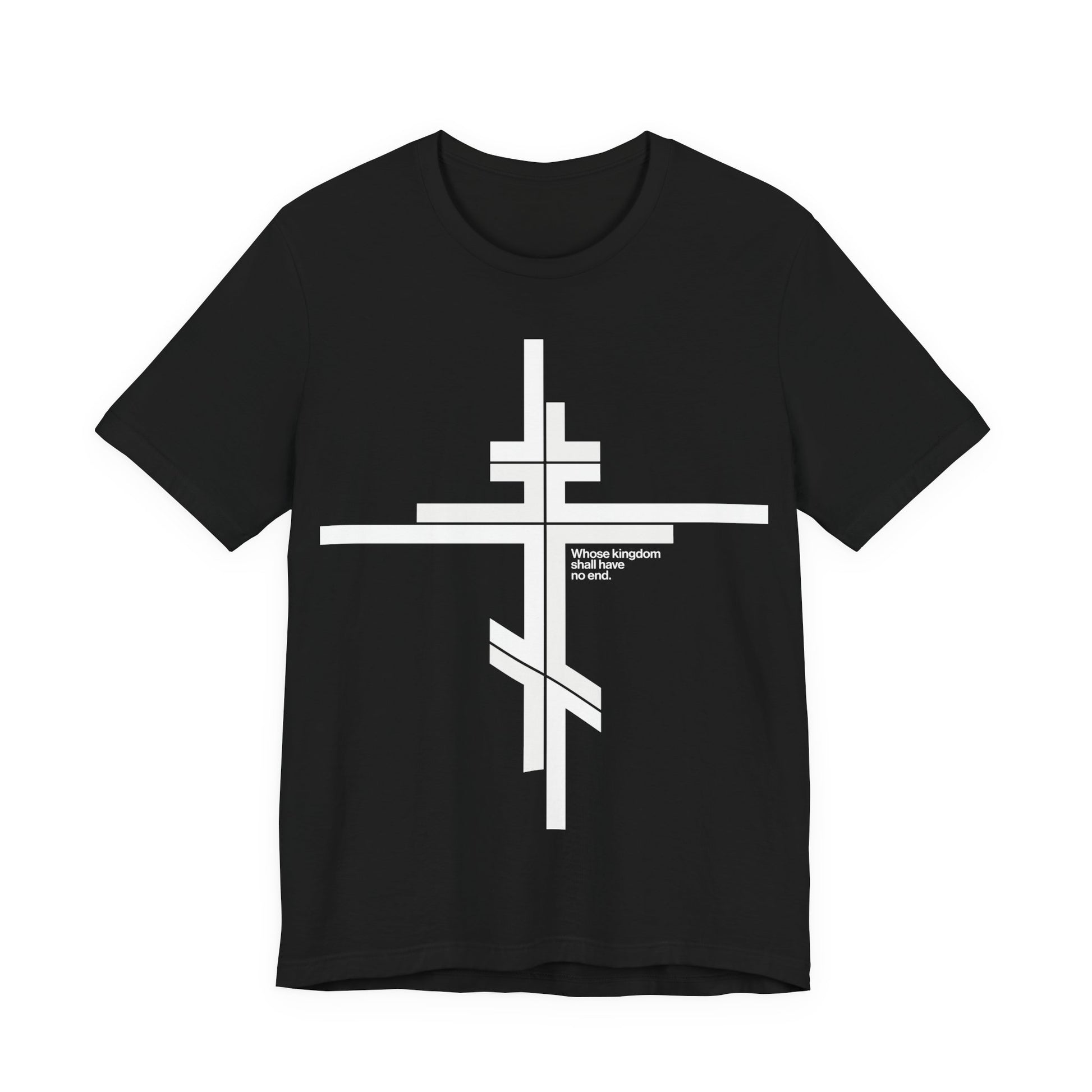 Whose Kingdom Shall Have No End | Luke 1:32-33 | Orthodox Cross | Modernist Minimalist Logo Style | Orthodox Christian Unisex Cotton T-Shirt